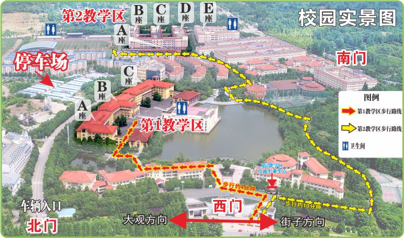 一、提前规划,准时赴考:本次考试人数较多,考点周边人流、车流密集,建议提到达校门,预留充足时间应对交通拥堵及步行至考场等环节(校门至第1教学区:约4分钟;校门至第2教学区:约10分钟)。