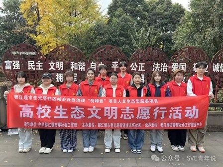 为响应生态文明建设号召,引导师生践行绿色发展理念,11月15日,我院组织12名志愿者,赴都江堰市奎光塔公园开展“生态文明志愿行”主题活动,以实际行动改善景区环境,向公众普及环保知识。